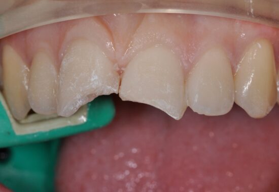 The dentist sends the technician a scan or moulds of your teeth on which the technician creates a porcelain veneer (like a false fingernail) which is cemented onto your tooth.